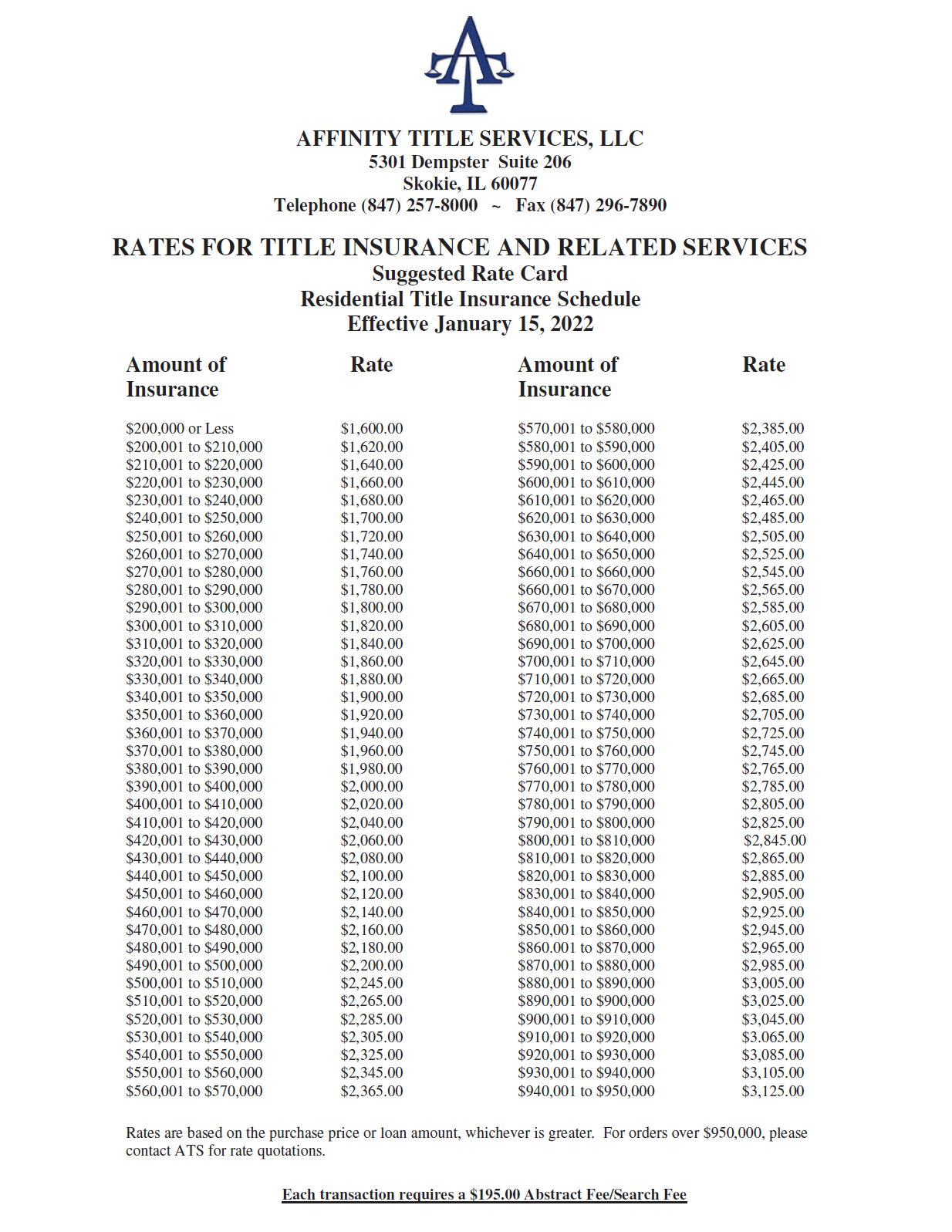 Affinity Title Services The Law Offices of T. Nicholas Tyszka, L.L.C. is not an agent for Affinity Title Services.
